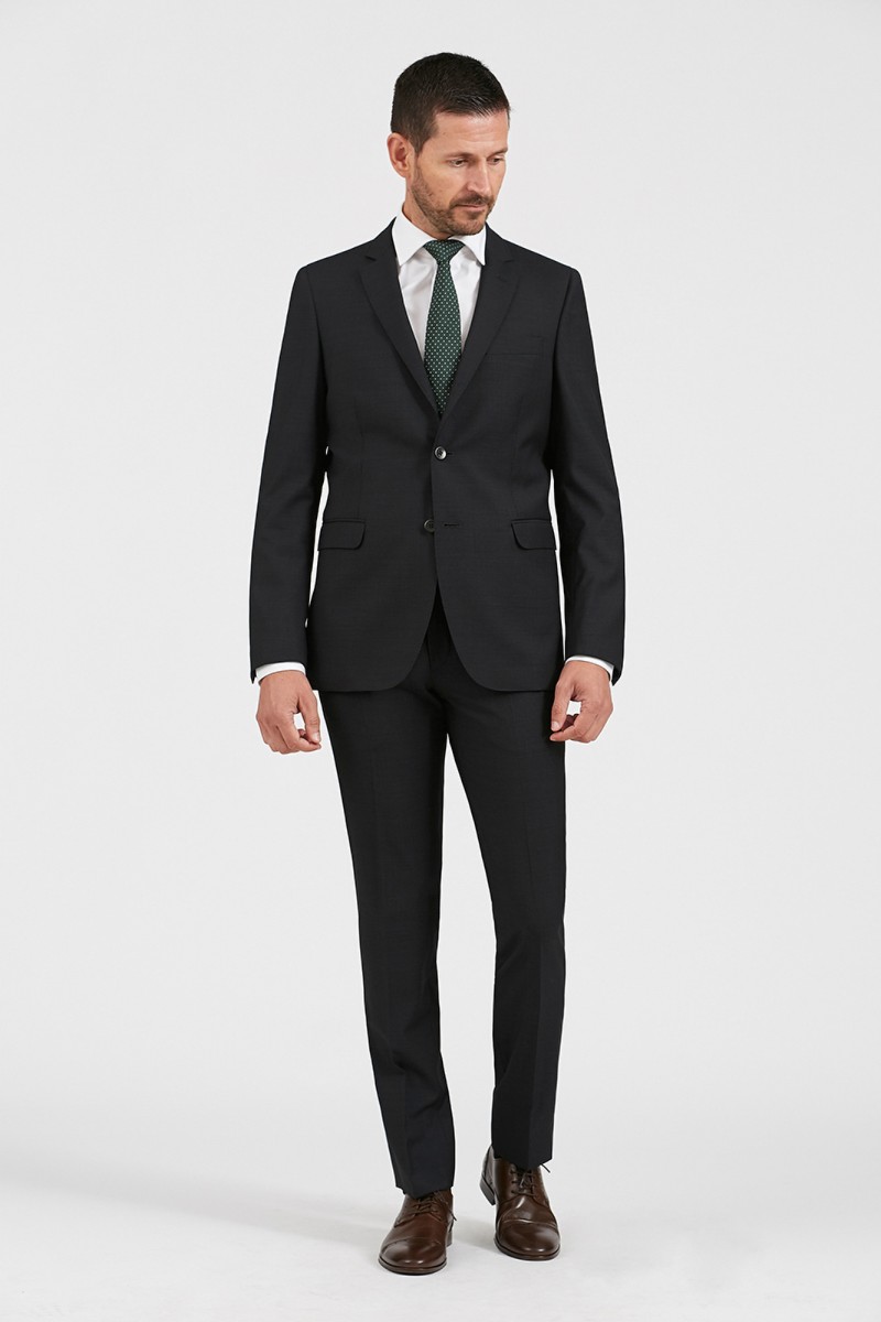 Agregue un toque sofisticado a su armario formal con este traje Florentino, perfecto para usar como traje de negocios o para ocasiones especiales. Este dos piezas de corte slim, está confeccionado con una suave tela italiana de pura lana con un sutil microdibujo para lucir un estilo contemporáneo y elegante.